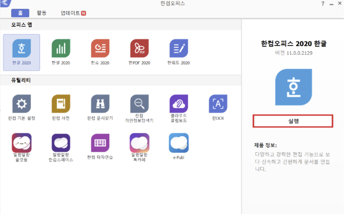 👉 아니요~ 한컴오피스 2020 전체 설치본이라서